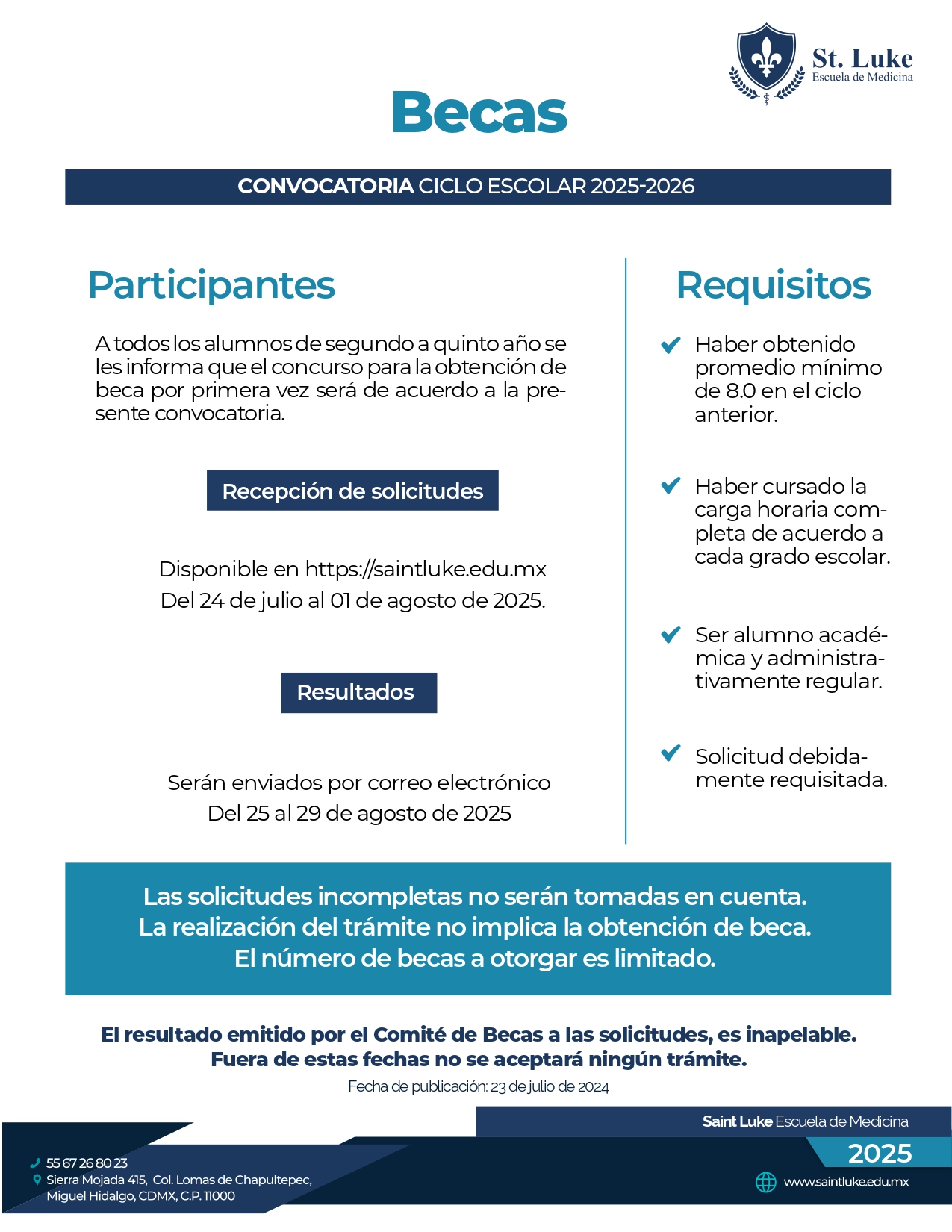 Las Becas “Dr. Antonio Fraga Mouret” están dirigidas a aspirantes de alto rendimiento académico que buscan iniciar su formación como médicos en una de las mejores escuelas del país.